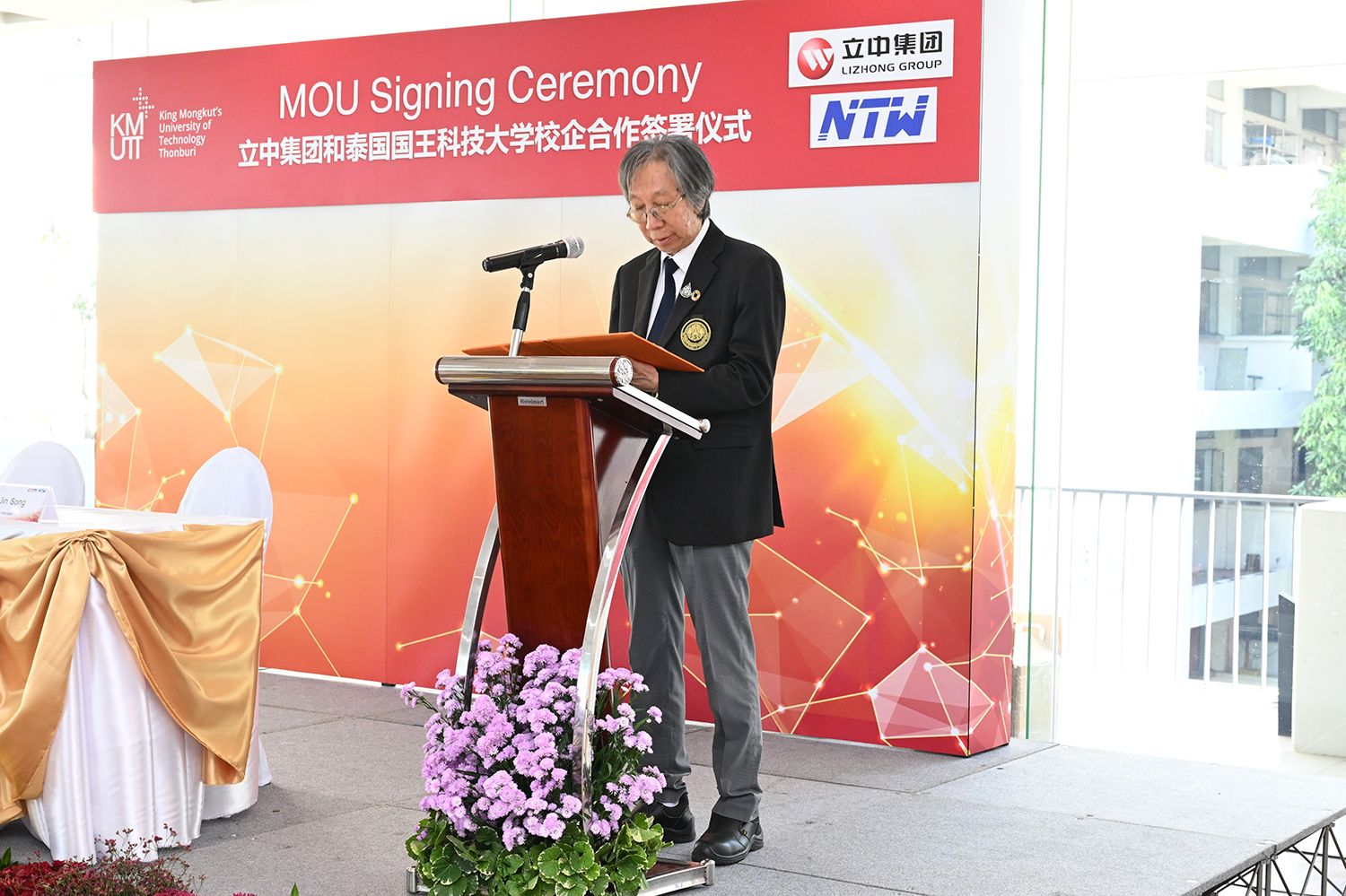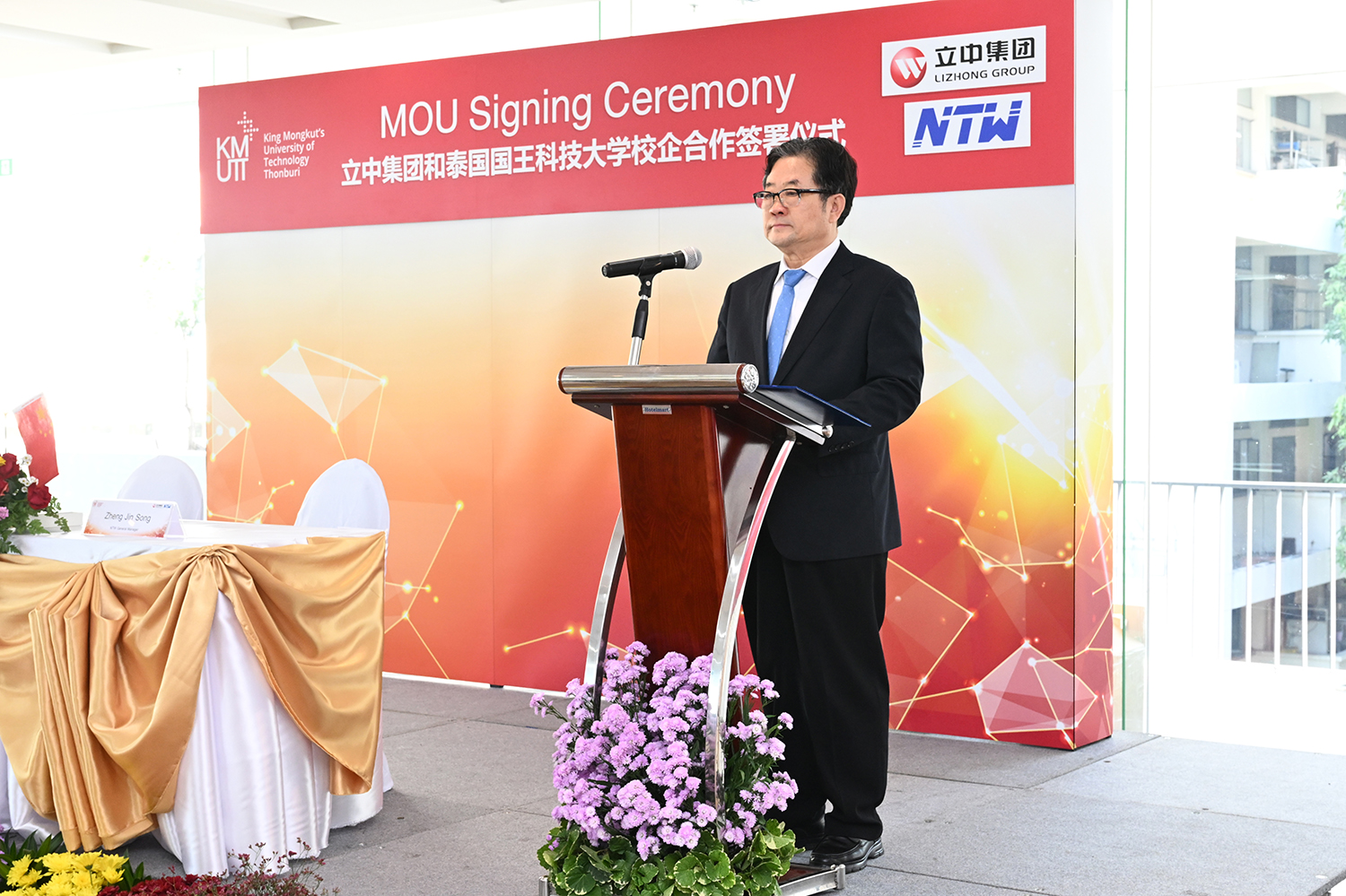 立中車輪集團副總裁葉珍先生,副總工鄭長清先生、新泰車輪公司管理團隊鄭勁松先生、魯興洋先生、金洪奎先生、黃春霞女士,泰國國王科技大學資深副校長甘雅文,輕金屬研究組組長、工程學部林國慶教授,盤谷銀行李湘純女士等出席儀式。
